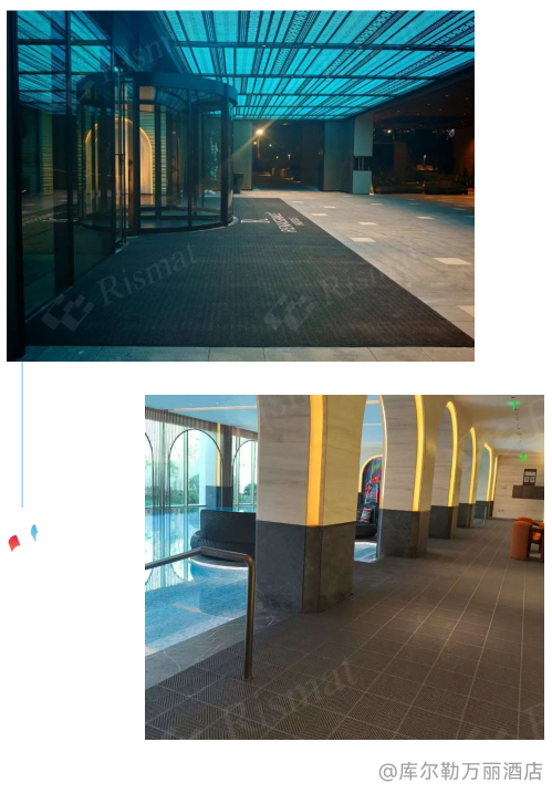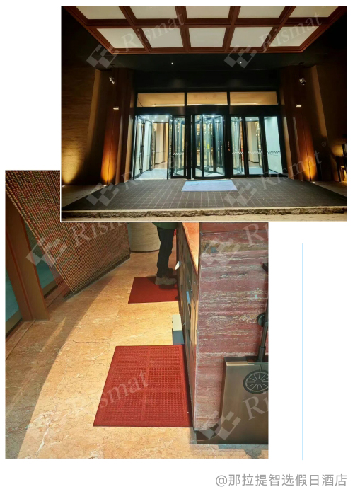 酒店主入口丽施美RISMAT拼装式刮沙除尘汲水垫,以模块化设计实现“三重防护”;